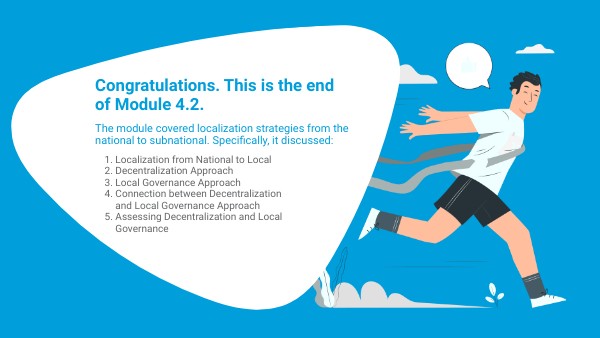 The module covered localization strategies from the national to subnational. Specifically, it discussed:
