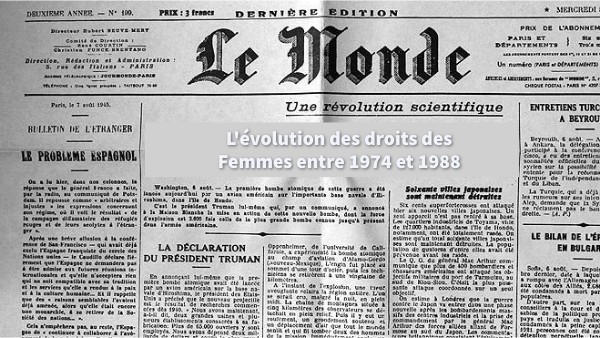 - Le chômage entre 74 et 88 - 1975 et la non-discrimination - 1983 : La loi Roudy - Le 11 mars 1986, signe de progrès