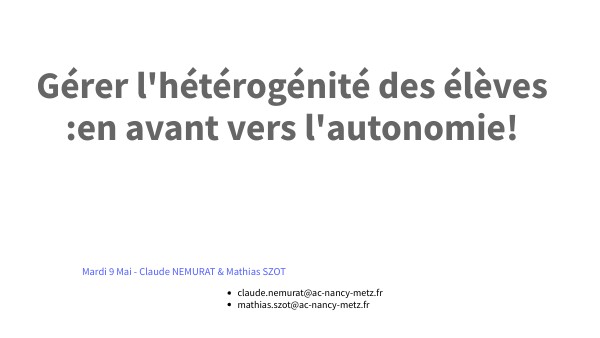 Gérer l'hétérogénité des élèves :en avant vers l'autonomie!