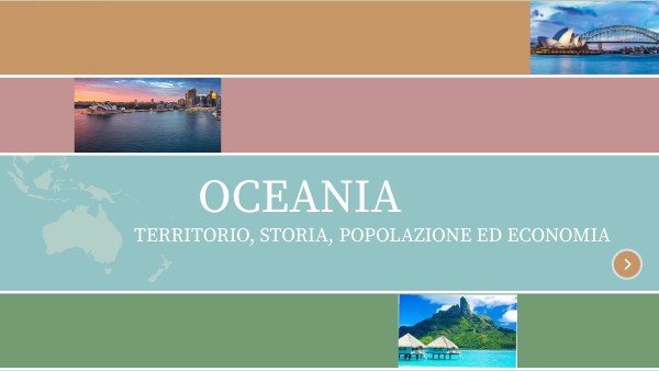 L'Oceania è il più piccolo dei continenti , il suo territorio è attraversato a nord dall'equatore, è formato da una massa continentale. Le terre che compongono l'Oceania risalono a ere geologiche diverse.L'Australia e la Tasmania sono di origine molto remota . Il Monte Ossa è la cima più alta della Tasmania . In Australia il più importante sistema montuoso è la Grande Catena Divisoria. Sono terre " giovani " quelle della nuova Zelanda e della nuova Guinea, le cui catene montuose presentano altitudini più elevate.