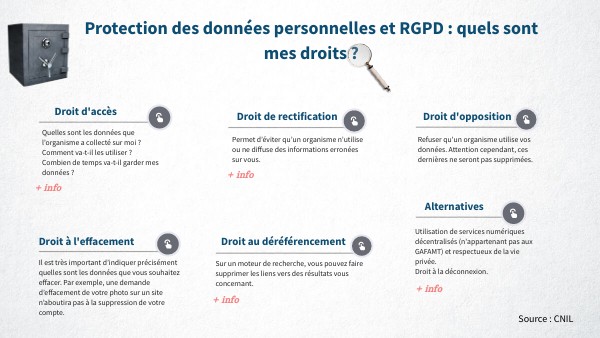Droits d'accès, d'opposition, droit au déréférencement, à l'effacement, à la déconnexion.