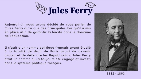Aujourd’hui, nous avons décidé de vous parler de Jules Ferry ainsi que des principales lois qu’il a mis en place afin de garantir la laïcité dans le domaine de l’éducation.