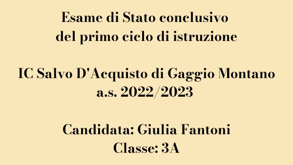 Esame di Stato conclusivo del primo ciclo di istruzione IC Salvo D'Acquisto di Gaggio Montano a.s. 2022/2023 Candidata: Giulia Fantoni Classe: 3A