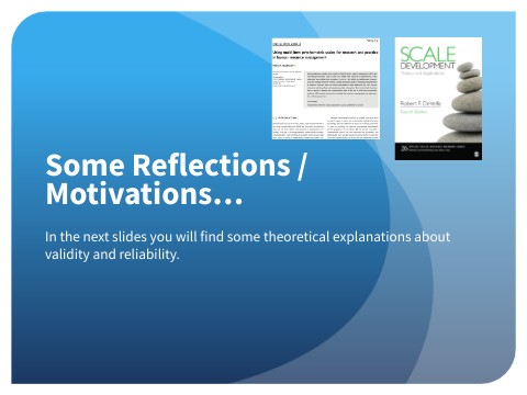 In the next slides you will find some theoretical explanations about validity and reliability.
