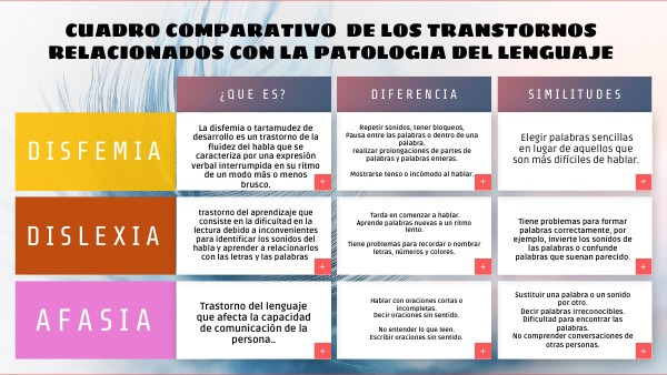 CUADRO COMPARATIVO DE LOS TRANSTORNOS RELACIONADOS CON LA PATOLOGIA DEL LENGUAJE
