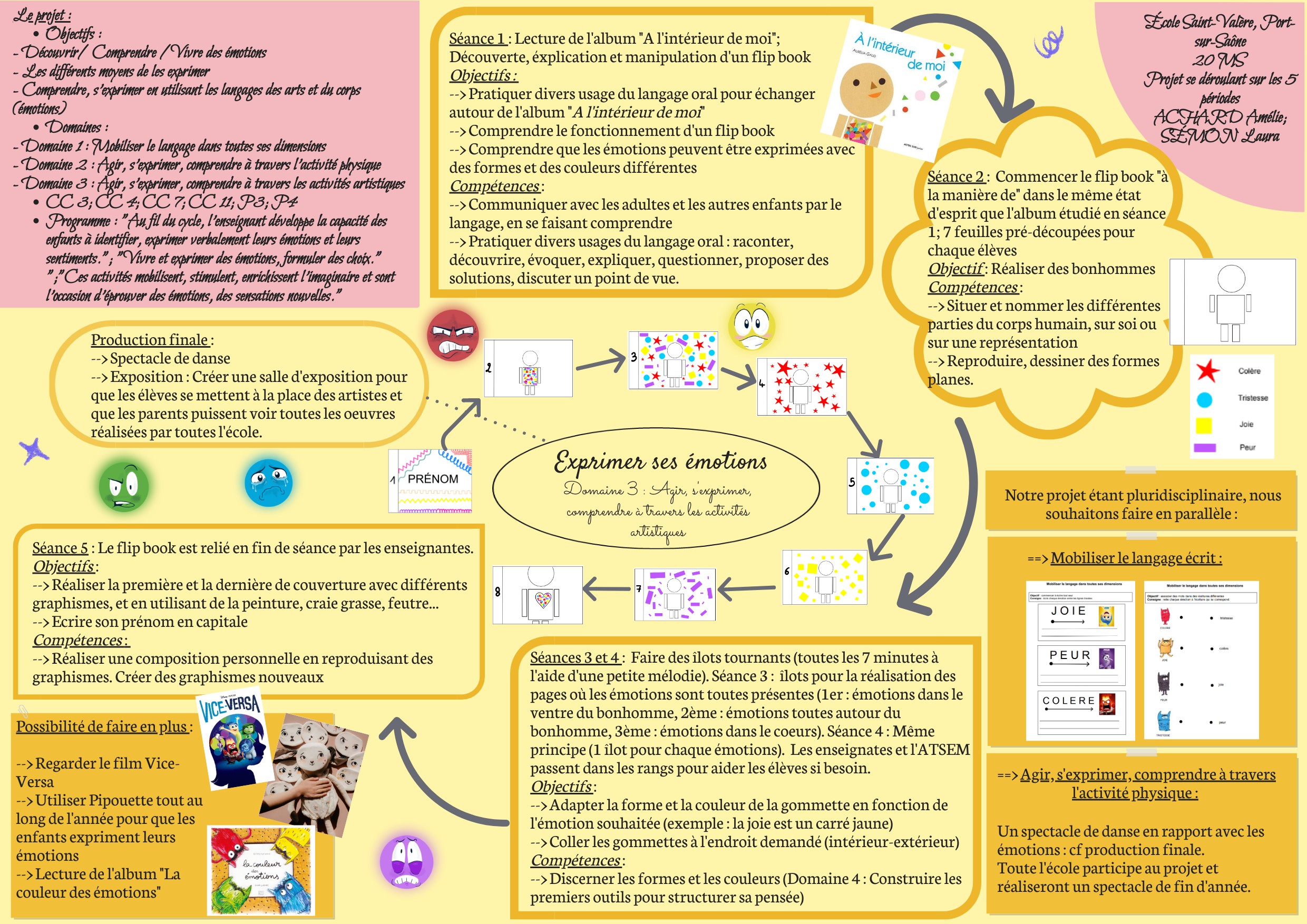 Un spectacle de danse en rapport avec les émotions : cf production finale.Toute l'école participe au projet et réaliseront un spectacle de fin d'année.