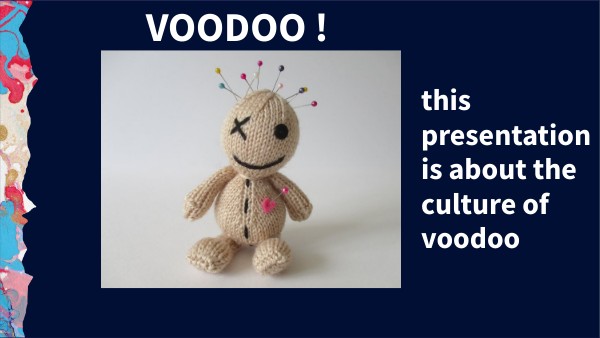 voodoo is a religion practised in parts of the Caribbean (especially Haiti) and the southern US ( Louisiane/New Orleans ), that combining elements of Roman Catholicism and traditional African magical and religious rites, and characterized by specifics things like voodoo dolls, rituals witchcrafts, dark magic, sacrifices etc...