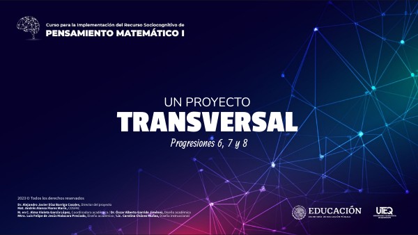 Dr. Alejandro Javier Díaz Barriga Casales, Director del proyecto Mat. Andrés Alonso Flores Marín, COSFAC M. en C. Alma Violeta García López, Coordinadora académica / Dr. Óscar Alberto Garrido Jiménez, Diseño académico Mtro. Luis Felipe de Jesús Malacara Preciado, Diseño académico / Lic. Carolina Chávez Muñoz, Diseño instruccional