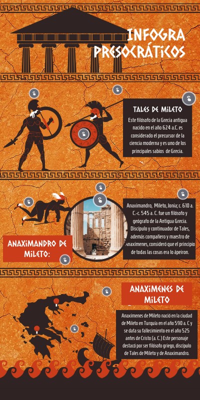 Anaximandro, Mileto, Jonia; c. 610 a. C.-c. 545 a. C. fue un filósofo y geógrafo de la Antigua Grecia. Discípulo y continuador de Tales, además compañero y maestro de Anaxímenes, consideró que el principio de todas las cosas era lo ápeiron.