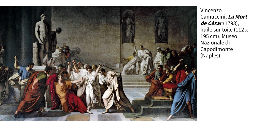 Vincenzo Camuccini, La Mort de César (1798), huile sur toile (112 x 195 cm), Museo Nazionale di Capodimonte (Naples).