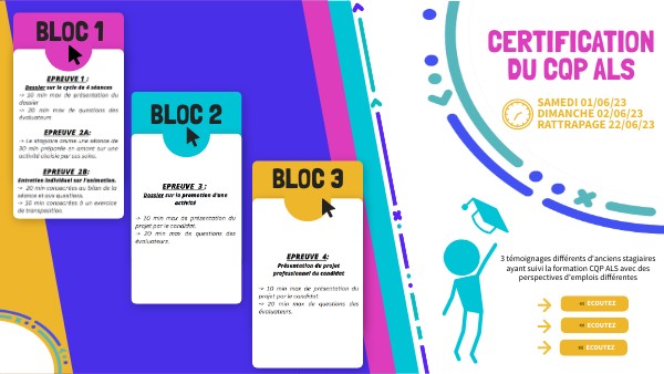 3 témoignages différents d'anciens stagiaires ayant suivi la formation CQP ALS avec des perspectives d'emplois différentes