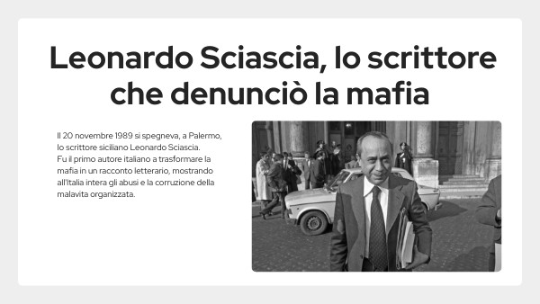Il 20 novembre 1989 si spegneva, a Palermo, lo scrittore siciliano Leonardo Sciascia. Fu il primo autore italiano a trasformare la mafia in un racconto letterario, mostrando all'Italia intera gli abusi e la corruzione della malavita organizzata.