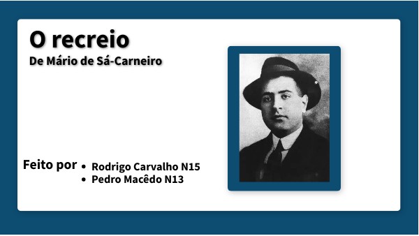 (O Recreio) Nesta manhã de sol o recreio está cheio. Há nele encantos vãos, como nos brinquedos, Gozam as crianças felicidades breves Sem consciência ainda dos prazeres. Há nesse alvoroço a festa dos brinquedos, Aqui quebra uma espada, ali fere-se um dedo. E enquanto uns saltam a corda, os outros, mudos, Se agrupam temerosos de uns cães vadios. Sente-se um cheiro a tinta, e a solas de algibeira Entre risos e mágoas passam estampas, Indecisos, vagos, uns papeis pintados. E de um lado a outro, apressados e a esmo, Correm meninos, saltam, gritam, caem Nos seus passos infantis e barulhentos.