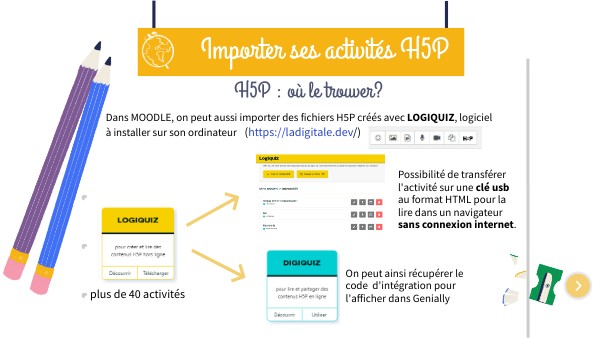 Dans MOODLE, on peut aussi importer des fichiers H5P créés avec LOGIQUIZ, logiciel à installer sur son ordinateur