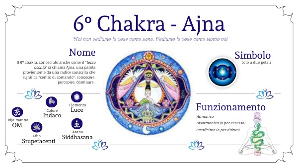 Il 6° chakra, conosciuto anche come il "terzo occhio" si chiama Ajna, una parola provieniente da una radice sanscrita che significa "centro di comando", conoscere, percepire, dominare..
