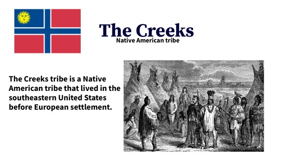 The Creeks tribe is a Native American tribe that lived in the southeastern United States before European settlement.