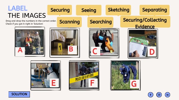 A - Separating Witnesses F - Securing the Scene B - Scanning the Scene G - Searching the Scene C - Securing/Collecting Evidence D - Sketching the Scene E - Seeing the Scene