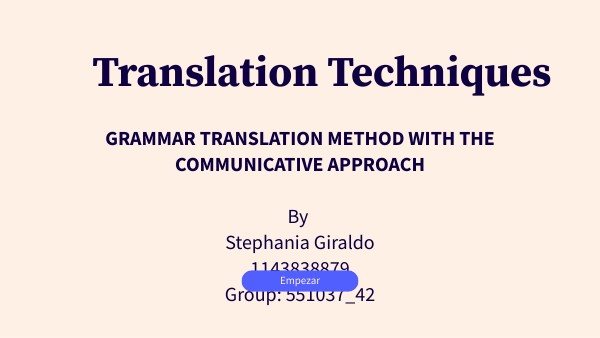 GRAMMAR TRANSLATION METHOD WITH THE COMMUNICATIVE APPROACH By Stephania Giraldo 1143838879 Group: 551037_42
