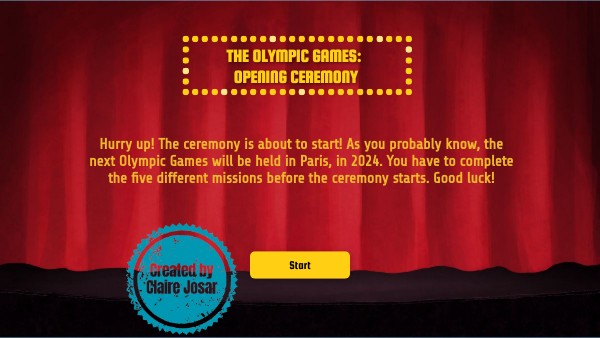 Hurry up! The ceremony is about to start! As you probably know, the next Olympic Games will be held in Paris, in 2024. You have to complete the five different missions before the ceremony starts. Good luck!