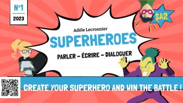 Crée ton propre superhéro et affronte un concurrent lors d’une « battle » à l'oral. Pour réussir : Aide toi de tes mains quand tu parles, respecte la prononciation, utilise des petits mots de liaison (but, and, well, oh, yeah…), entraîne-toi, écoute ton partenaire