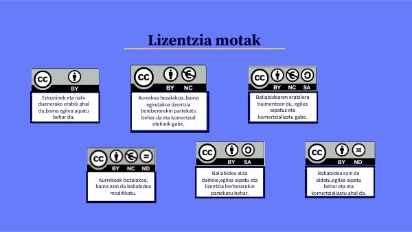 Baliabidea ezin da aldatu,egilea aipatu behar eta eta komertzializatu ahal da.