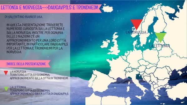 IN QUESTA PRESENTAZIONE TROVERETE NUMEROSE CURIOSITÀ SULLA LETTONIA E SULLA NORVEGIA. INOLTRE PER OGNUNA DELLE 2 NAZIONI C'È UN APPROFONDIMENTO PER UNA LORO CITTÀ IMPORTANTE, IN PARTICOLARE DAUGAVPILS PER LA LETTONIA E TRONDHEIM PER LA NORVEGIA