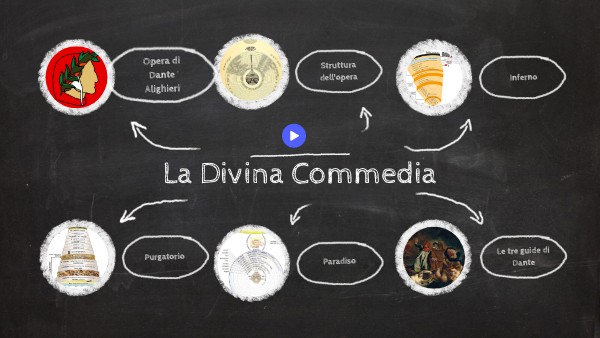La Divina Commedia è senza alcun dubbio, l'opera più importante di Dante Alighieri. Il titolo dell'opera scelto da Dante era "Commedia". L'aggettivo Divina fu aggiunto successivamente da Boccaccio. Il poema è scritto in lingua volgare ed è composto da tre Cantiche: l'Inferno, il Purgatorio e il Paradiso.