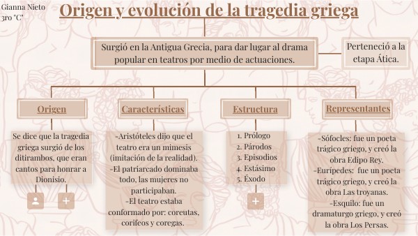 -Sófocles: fue un poeta trágico griego, y creó la obra Edipo Rey.-Eurípedes: fue un poeta trágico griego, y creó la obra Las troyanas. -Esquilo: fue un dramaturgo griego, y creó la obra Los Persas.