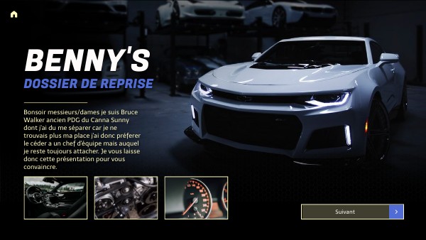 Je vais donc commencer par énoncer mes sources de motivations pour cette reprise.Tout d'abord je suis un grand fan de véhicules en tout genre mais ce n'est bien sur pas tout monsieur Hamza ancien PDG de ce garage exceptionel m'a beaucoup donné et appris c'est aussi pour cela que je souhaiterais reprendre ce joyaux pour suivre sa route, ce serait une façon de lui rendre hommage et de le remercier pour tout ce qu'il m'a enseigné en tant que ancien mécano. Comme énoncé sur ma page de garde j'étais PDG du Canna mais ma place n'était plus la bas j'ai donc préferer le confier a un employé pour tenter ma chance avec le Benny's comme vous avez pu le voir je possède toutes les qualités pou reprendre une entreprise car le Canna Sunny a très bien fonctionné et j'en suis sur il continuera sur cette lancée.