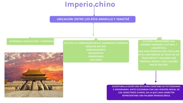 Escritura:la escritura en China constaba de pictogramas e ideogramas. Antes escribian con una versión inicial de los caracteres chinos, en la que cada carácter representaba una palabra monosilábica.