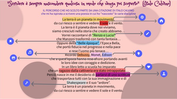 IL PERCORSO CHE HO SCELTO PARTE DA UNA CITAZIONE DI ITALO CALVINO che mi ha ispirata a scrivere una poesia in cui ho "nascosto" le varie discipline