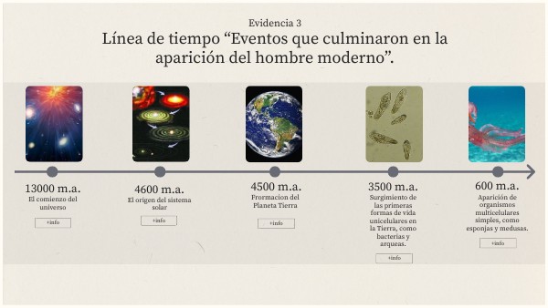 Línea de tiempo “Eventos que culminaron en la aparición del hombre moderno”.