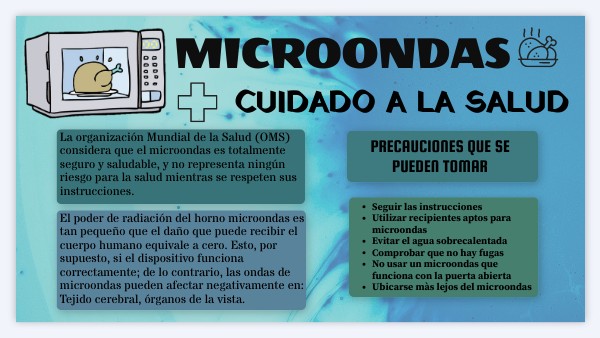 La organización Mundial de la Salud (OMS) considera que el microondas es totalmente seguro y saludable, y no representa ningún riesgo para la salud mientras se respeten sus instrucciones. El poder de radiación del horno microondas es tan pequeño que el daño que puede recibir el cuerpo humano equivale a cero. Esto, por supuesto, si el dispositivo funciona correctamente; de lo contrario, las ondas de microondas pueden afectar negativamente en: Tejido cerebral, órganos de la vista.
