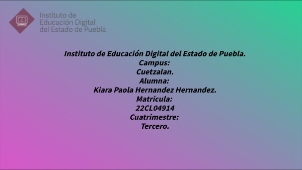 Instituto de Educación Digital del Estado de Puebla. Campus: Cuetzalan. Alumna: Kiara Paola Hernandez Hernandez. Matricula: 22CL04914 Cuatrimestre: Tercero.