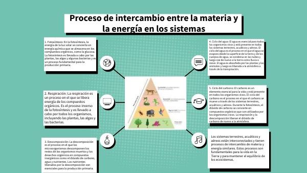 Los sistemas terrestres, acuáticos y aéreos están interconectados y tienen procesos de intercambio de materia y energía similares. Estos procesos son fundamentales para la vida en la Tierra y para mantener el equilibrio de los ecosistemas.