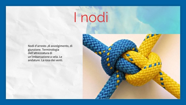 Nodi d'arresto ,di avvolgimento, di giunzione. Terminologia dell'attrezzatura di un'imbarcazione a vela. Le andature. La rosa dei venti.