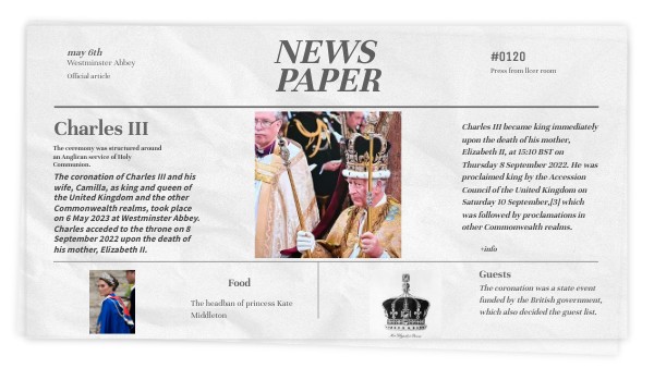 The coronation of Charles III and his wife, Camilla, as king and queen of the United Kingdom and the other Commonwealth realms, took place on 6 May 2023 at Westminster Abbey. Charles acceded to the throne on 8 September 2022 upon the death of his mother, Elizabeth II.