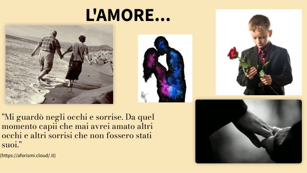 "Mi guardò negli occhi e sorrise. Da quel momento capii che mai avrei amato altri occhi e altri sorrisi che non fossero stati suoi."