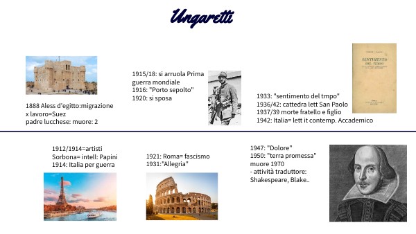 1947: "Dolore" 1950: "terra promessa" muore 1970 - attività traduttore: Shakespeare, Blake..