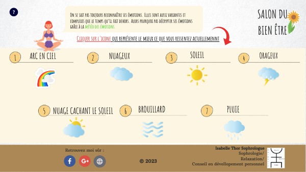 On se sait pas toujours reconnaître ses émotions. Elles sont aussi variantes et complexes que le temps qu’il fait dehors. Alors pourquoi pas décrypter ses émotions grâce à la météo des émotions.
