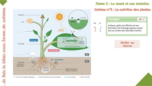 Clique sur le schéma pour faire apparaître le trajet de la sève brute. Choisis la bonne proposition.
