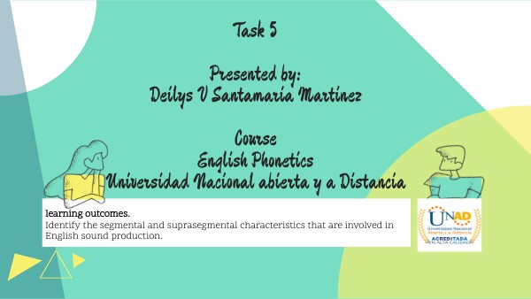 Task 5 Presented by: Deilys V Santamaria Martinez Course English Phonetics Universidad Nacional abierta y a Distancia