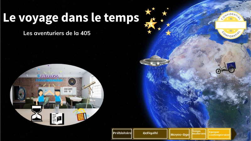 Mission 1 – Alerte aux dinos Little Boy réunit sa classe au collège. Il expliqua la situation à ses camarades. — On doit aider E.T. à retrouver son code pour rentrer chez lui. Mais ce ne sera pas facile… Ils trouvèrent un mystérieux boîtier dans la soucoupe. Il contenait un écran avec un message : « Résolvez chaque énigme pour découvrir un chiffre. Mais attention… chaque réponse vous transportera dans une époque différente ! » Le premier défi s’afficha …. Ils relevèrent le défi… Un éclair jaillit du boîtier. La plage disparut. Le sable devint terre rouge… un dinosaure apparut devant eux ….