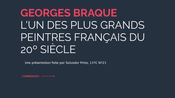 Comme beaucoup d'étudiants en art, j'ai mon style artistique préféré, le cubisme. Lorsque j'ai vu que le cubisme, l'un de mes styles préférés, avait été créé par George Braque, j'ai immédiatement pensé qu'il fallait que je parle de lui dans cette présentation.