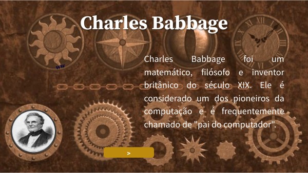 Charles Babbage foi um matemático, filósofo e inventor britânico do século XIX. Ele é considerado um dos pioneiros da computação e é frequentemente chamado de "pai do computador".