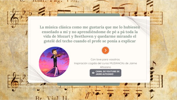La música clásica como me gustaría que me lo hubiesen enseñado a mí y no aprendiéndome de pé a pá toda la vida de Mozart y Beethoven y quedarme mirando el gotelé del techo cuando el profe se ponía a explicar
