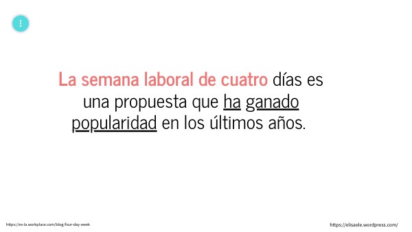 ¿Conoces a alguien que tiene una jornada laboral de 4 días? ¿Te gustaría trabajar 4 días a la semana? ¿Crees que tu vida mejoraría con este modelo? ¿Por qué?¿Cómo?