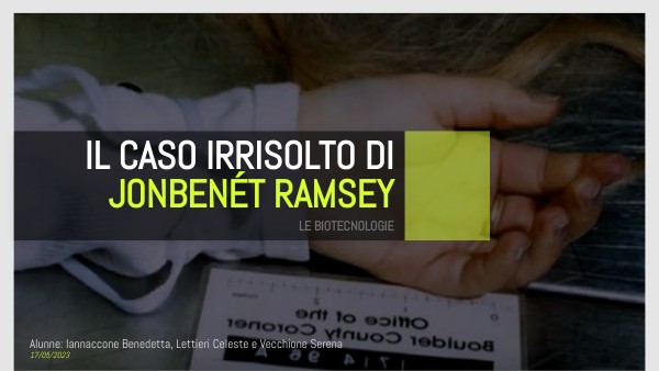 Jonbenét è una bambina particolarmente bella e per questo motivo partecipa a vari concorsi di bellezza.In generale i Ramsey sono una famiglia tranquilla e benestante, ben vista dalla comunità di Boulder. Purtroppo nel Natale di quello stesso anno un terribile evento sconvolgerà le loro vite.25 Dicembre 1996. Ore 22.La famiglia rincasa dopo aver passato la serata natalizia fuori. Sono le 5:30 del mattino quando Patsy si alza. La donna nota subito qualcosa di strano sulle scale che portano alla cucina. Su un gradino sono adagiati tre fogli scritti a mano. I fogli provengono da un blocchetto di sua proprietà, e per scrivere è stata utilizzata una penna che era presente nella casa.