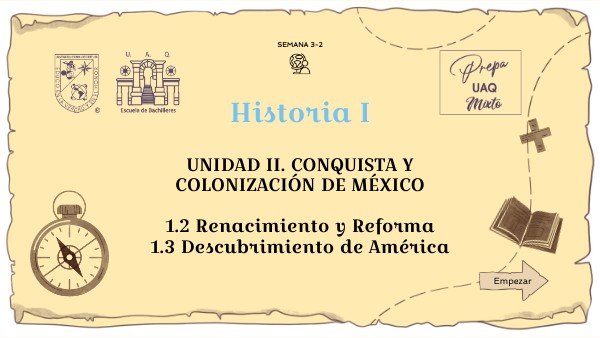 UNIDAD II. CONQUISTA Y COLONIZACIÓN DE MÉXICO 1.2 Renacimiento y Reforma 1.3 Descubrimiento de América