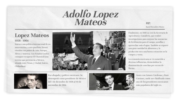Fue abogado y político mexicano. Se desempeñó como presidente de México del 1 de diciembre de 1958 al 30 de noviembre de 1964.